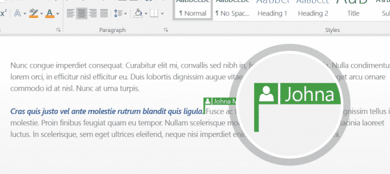 What’s changed is the level of detail in displaying changes to the other users online. In Office 2013 if you edited a paragraph, that paragraph was locked out for other editors until you’d finished. Then the paragraph changes were pushed out to the other editors.