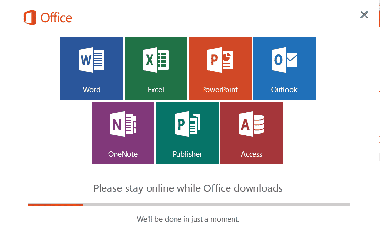 The installer says “We’ll be done in just a moment.” but that’s a Microsoft euphemism. Presently, ‘a moment’ can mean an hour or more even with a fast internet connection. The problem isn’t the internet connection but the MS servers ability to push bits out fast enough.