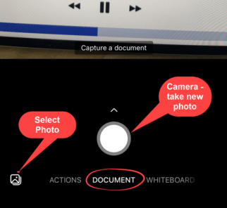Choose Document from the main menu then either take a shot with the camera or select a photo from the device.