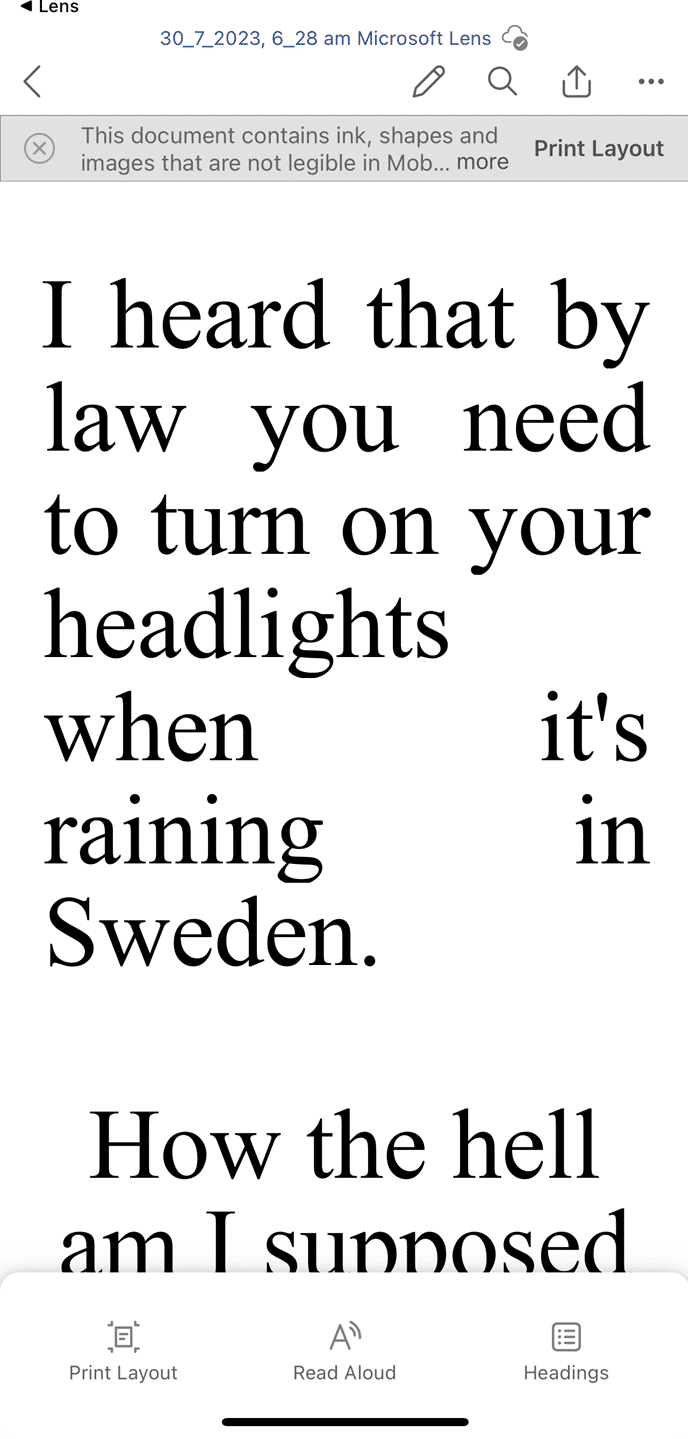 Lens has a wonderful straightening trick that turns an off-center photo into something ‘straight on’ which is easier to read and convert into text. It’s available for Apple iPhone, iPad and Android devices.