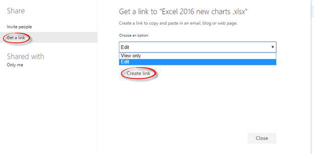 Create link will show you a link. By default the file is available to anyone who has the link.