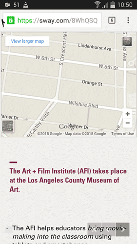 Here’s the same presentation and ‘slide’ as above but on an Android smartphone. Sway has adapted the content to display elegantly on the much smaller screen.