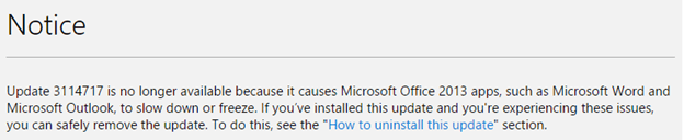 After the usual complaints on forums, Microsoft did something quite amazing …. They put a notice on the top of the KB page.