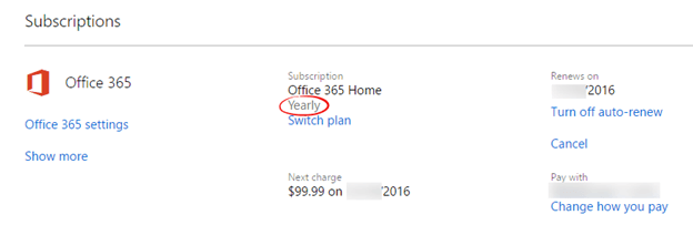 One of Microsoft’s tricks has been to auto-renew at the monthly price – which is the most expensive way to get Office 365. Great for Microsoft’s bottom line, not so great for customers.