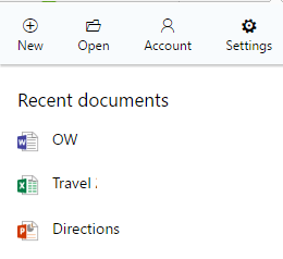 Or see a list of Recently Opened documents in OneDrive or OneDrive for Business.