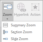 Zoom is a new way to view parts of your presentation and jump between slides. It’s called ‘Zoom’ because you can click/tap on a thumbnail to see the whole slide. It comes in three flavors: