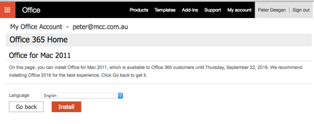 If you want a copy of Office 2011 for Mac on your Office 365 subscription, you’ve only got until 22 September 2016 (about 6 weeks away) to get it.