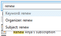 Here’s an example, we’ve searched for the word ‘Renew’ in a Calendar and three results have appeared but only one has a highlight for the search result.