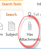 What’s missing from Outlook is the ability to search attachment names only. A general search (no search filters) will find attachment names plus any other matches. There’s no way to search only the attachment names to find a particular file or type of file.