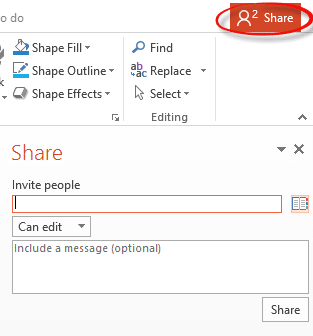 Use the Share options in PowerPoint to give access to others. Either click on the Share button or choose File | Share.