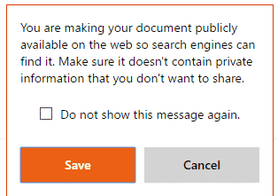 Alas, too many people will click the ‘Do not show this message again’ box which will hide the public access warning in future. Maybe Microsoft will change this to force the warning for all public access documents?