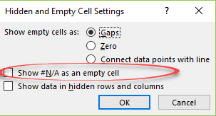 ‘Show #N/A as an empty cell’ stopped cells with #N/A results from messing up a perfectly good chart.