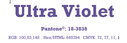 Here are the RGB, Hex and CMYK values for Ultra Violet.