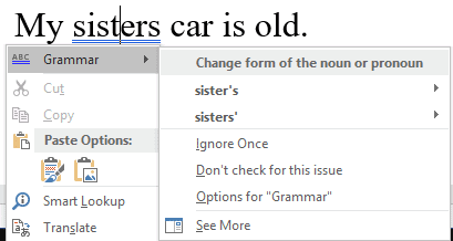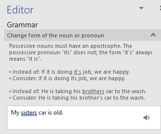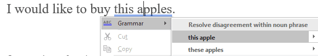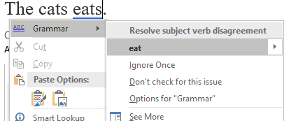 Which is correct, but Word doesn’t detect the mistake, let alone suggest a fix! Microsoft could have easily given an example that worked in Word and demonstrated the effective grammar check.
