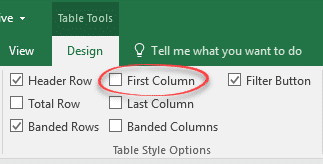From Table Tools | Design you’ll may want to select ‘First Column’ to highlight the product name.