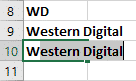 In this example we’ve used two names for the same brand; Western Digital and WD. When we type ‘W’ in the third row, Excel suggests the name of the previous row which saves typing and ensures consistency.