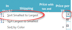 Save the Excel worksheet to OneDrive or Dropbox, then open it on a tablet or smartphone when you’re in a store. Change the prices, add another row or edit other details to see your revised choices. The important Sort and Filter options are there, just like in Excel Windows/Mac.