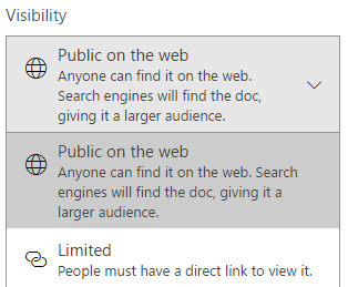 There are only two Visibility options. ‘Public on the web’ or ‘Limited’.