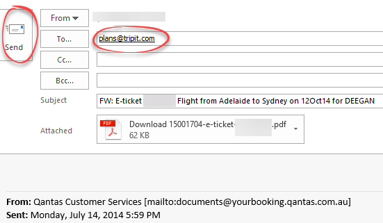 Note: Tripit’s system doesn’t seem to read attachments, only the body of the email. It does no harm to include any attachments in the forwarded message.