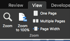 You can Zoom the page view, choose Page Width or view two (Multiple) pages on the screen.