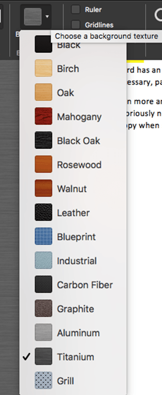 The background area for Focus view is configurable from the Background button on the ribbon. More backgrounds are being added to Focus mode, this example is from an “insiders preview’ of Word 2016 for Mac.