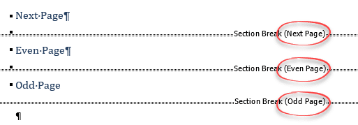There are also Word section breaks that include a page break. All the document break options are at Layout | Breaks.