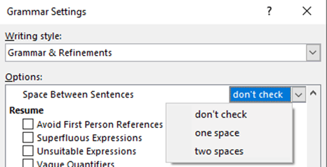 Word’s sentence spacing check