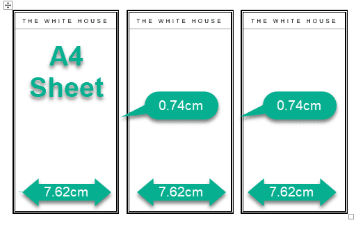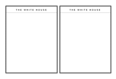Most likely The White House uses custom paper and paper size. We’ll be practical and use a standard Letter/A4 page, Landscape orientation then divided into 2 or 3 sections.