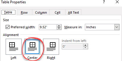 Here’s the table without borders and the table gridlines showing. The approx. widths of the three columns are also shown (they may vary on your page).