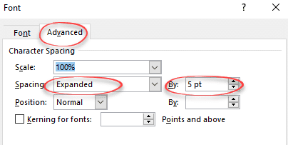 In this case you’ll see how to use tables to achieve formatting not immediately available in Word. It’s something we cover in Formatting Magic with Word. Also the font expand option tucked away in the advanced font settings.