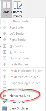 Finally, add a horizontal line under the title. Go back to the Borders pull-down (again) and choose Horizontal Line