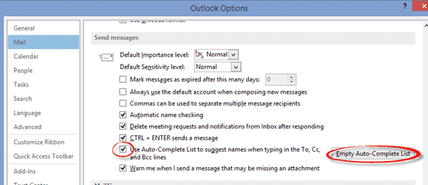 If you’re working in a sensitive area, consider stopping Outlook’s AutoComplete. It makes email addressing a little slower but greatly reduces the risk of addressing accidents.