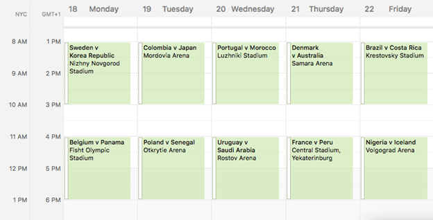 We’ll keep looking for other good World Cup 2018 calendar sources. An ideal calendar would be updated with scores as the Cup proceeds.
