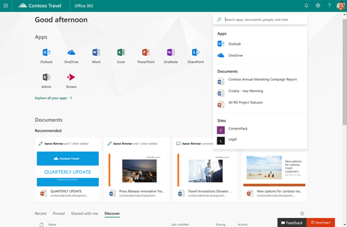 The Office.com pane is changing with a ‘Recommended’ section that lists items that Microsoft’s Artificial Intelligence thinks you should see. Discover shows documents other staff are working on, including new documents you might not be aware of.