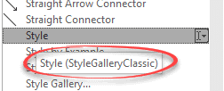 Happily the classic Style menu is available on the Quick Access Toolbar. UNhappily, it’s hidden among other command choices with the same or similar names!