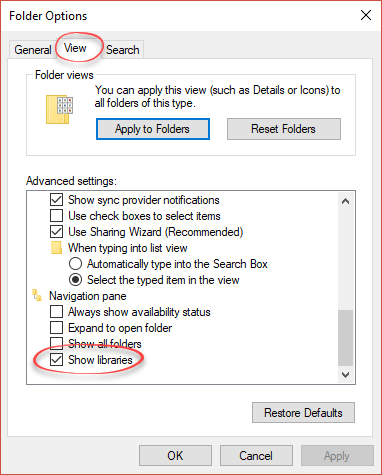 To restore Libraries go to Explorer | View tab | Options | Change folder and search options | View | then scroll waaaay down to the bottom for | Show libraries.  When we said Redmond had ‘hidden’ libraries, we weren’t kidding!