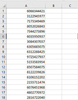 For this example we have a list of numbers that are actually phone numbers entered without any formatting.