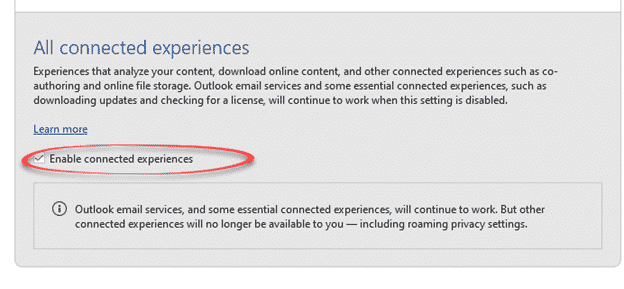 Some internet connections will still work even with ‘Enable connected experiences’ OFF.