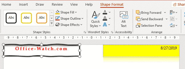 The placeholder boxes can be formatted individually. Click on the box so the border handles appear. The Shape Format tab also appears with all the familiar options for Fill, Outline and Effects.