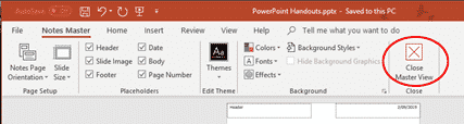 When you have finished designing your Notes Master, click the Close Master View button to return to your presentation.