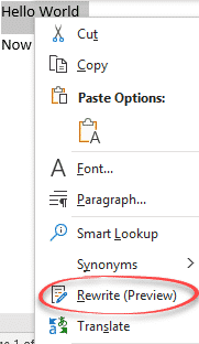 Even though Rewrite is on Microsoft publicly released features for Office 365 for Windows, it’s still a preview or beta test feature.