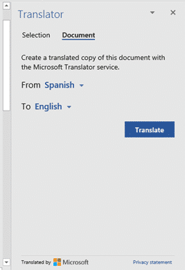 As with translating a selection, the Translator will open in a sidebar, where you can select the languages to translate from and to.