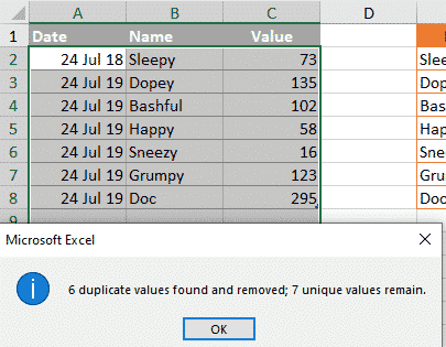 The other de-duplication option is nearby at Data | Data Tools | Remove Duplicates.