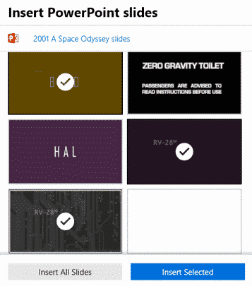 Click on the pages/slides you want inserted or click Insert All Slides.