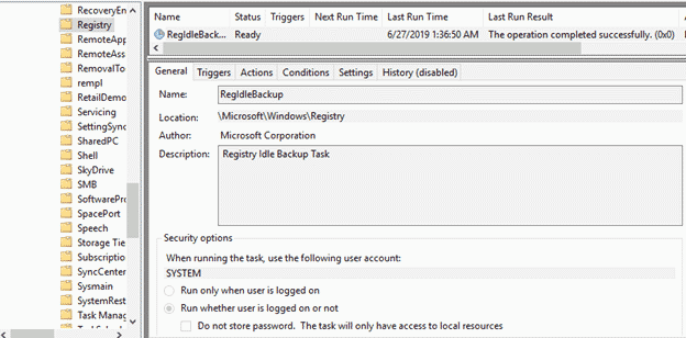 Then restart the computer. Adding that key will automatically create a scheduled task in the Microsoft\Windows\Registry folder.