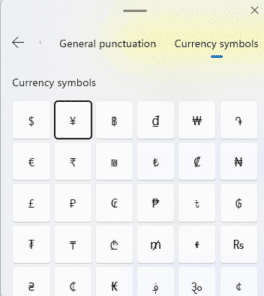 The Windows 11/10 Emoji Panel has the Yen ¥ . Use Win + . (period/fullstop) to open the panel.