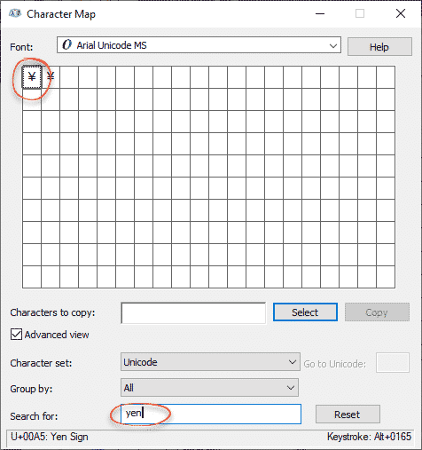 ¥ symbol is easy on some keyboards but for most there’s no specific key for Yen.