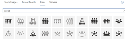 Office 365 and Office 2019 have Icons that come from Microsoft’s cloud service. Office 365 has the largest range while Office 2019 has a smaller list to choose from at Insert | Icons.