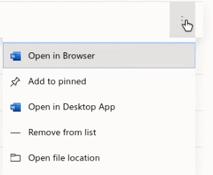 The browser list of documents saved in OneDrive can open a document either in the browser or the app. Look for the three-dots menu on the right.