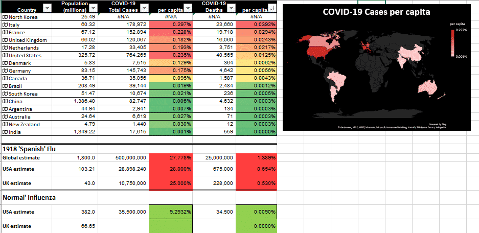 Peter refreshed the COVID-19 statistics (which any Excel 365 will do from Data | Refresh All).